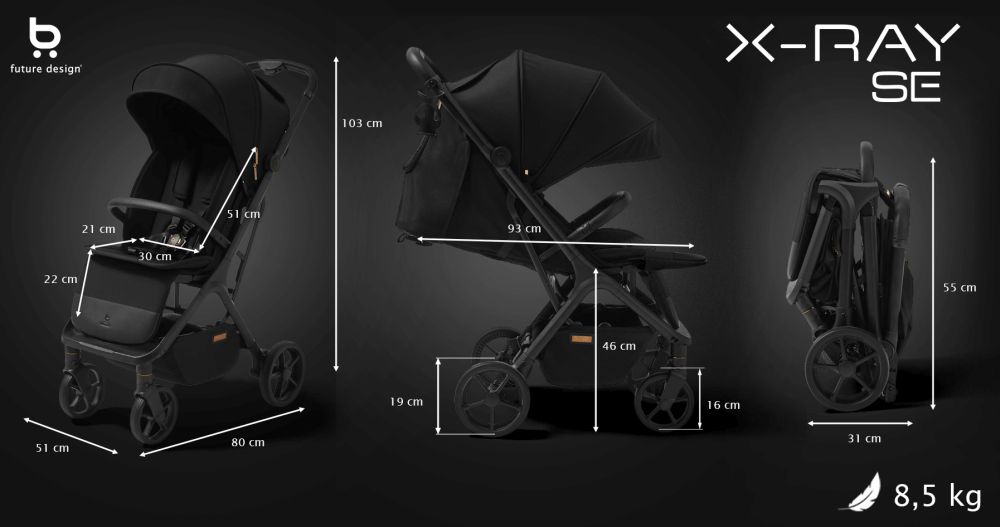 Caruciorul sport XRAY SE Pure Black este o versiune imbunatatita a binecunoscutului carucior compact de la Future Design, conceput pentru familiile active si moderne.