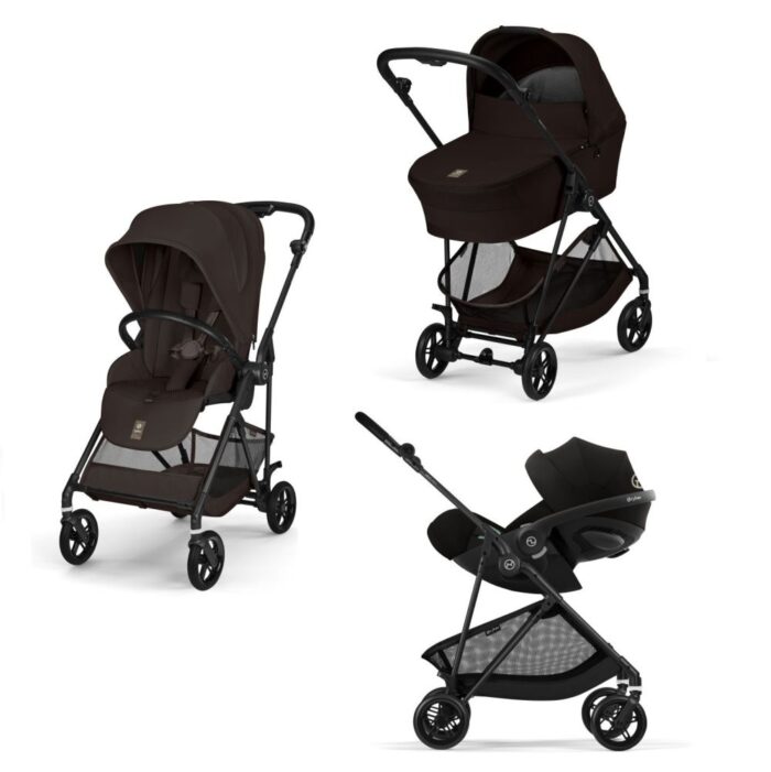 Noul Cybex Melio Carbon Chocolate Brown 3 in 1 cu landou + Scoica Cloud G Plus i-Size Recline si adaptori.