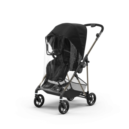 Pentru a proteja eficient impotriva vantului si a ploii, husa de ploaie poate fi atasata la carucioarele din gama Melio.