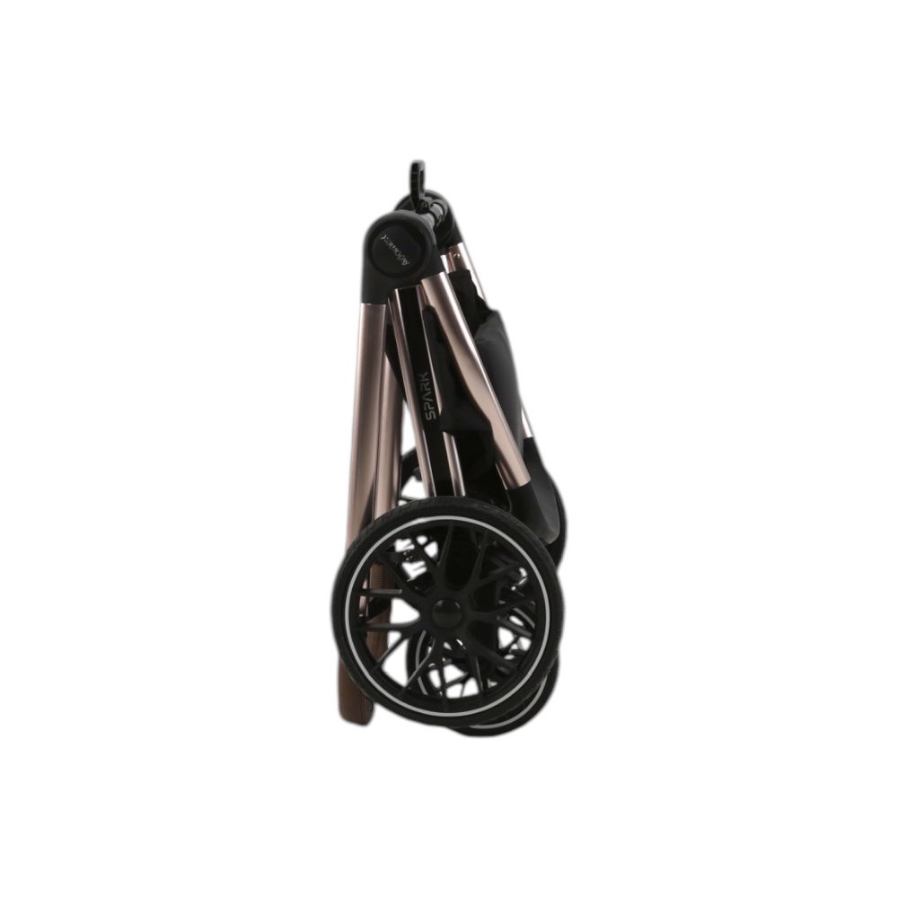 Spark include: plasa anti-insecte, husa de ploaie, parasolar, husa pentru picioare, geanta pentru scutece si insertie din spuma cu memorie. Un set all-in-one gata pentru bebelusul tau inca din prima zi.