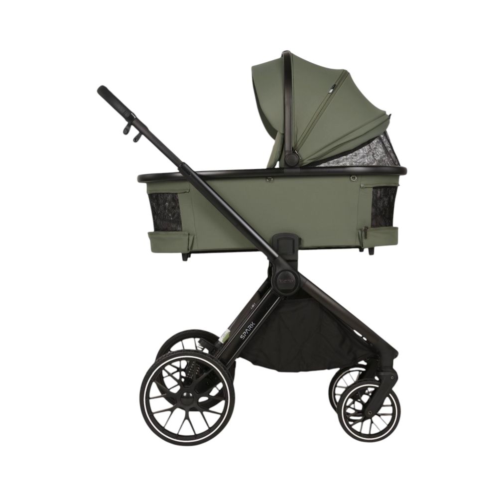 Spark include: plasa anti-insecte, husa de ploaie, parasolar, husa pentru picioare, geanta pentru scutece si insertie din spuma cu memorie. Un set all-in-one gata pentru bebelusul tau inca din prima zi.