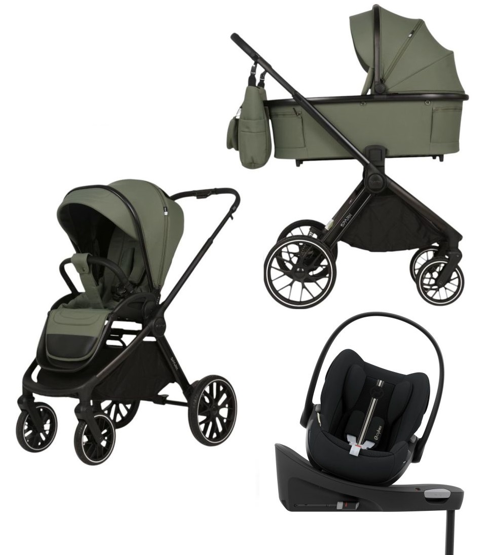 Setul include: Noul Spark Adamex Velvet-Salvia + landou, scoica Cybex Cloud G Plus i-size recline testata ADAC + adaptori, plasa anti-insecte, husa de ploaie, parasolar, husa pentru picioare, geanta pentru scutece, insertie din spuma cu memorie si baza isofix rotativa, pe care mai tarziu se cupleaza scaunul Cybex Sirona.